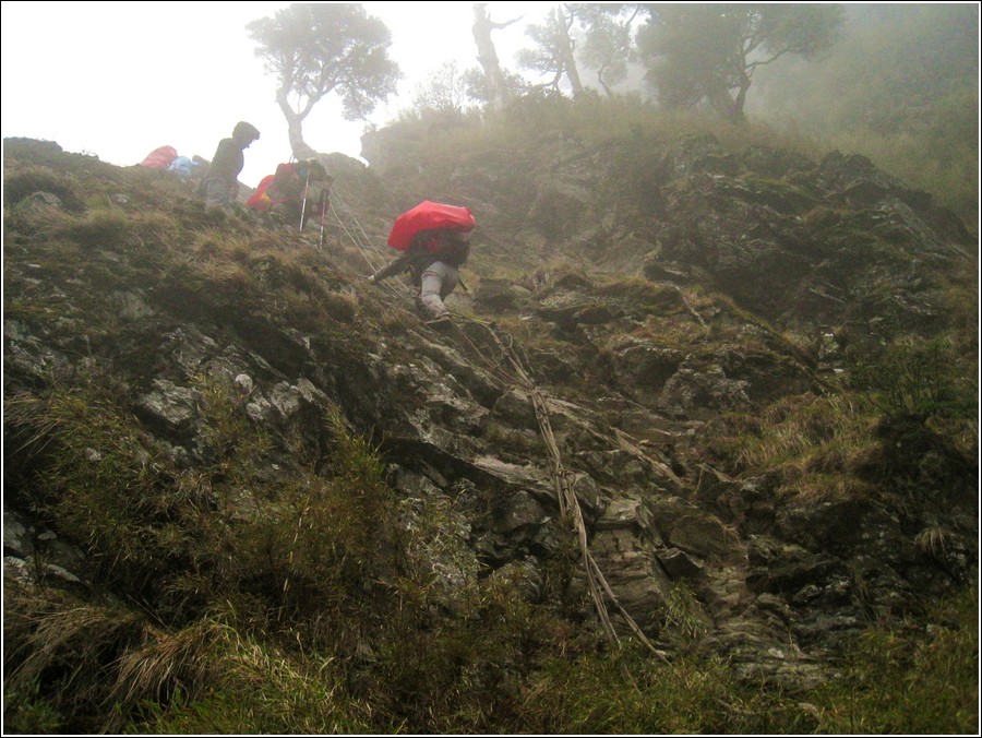 重裝從海拔3168米 的甘薯南峰下切到海拔1,935米 的耳無溪營地4.7K,落差1千2百米 ,這天還得跟風雨搏鬥,小紅帽硬陡'、強悍啊!