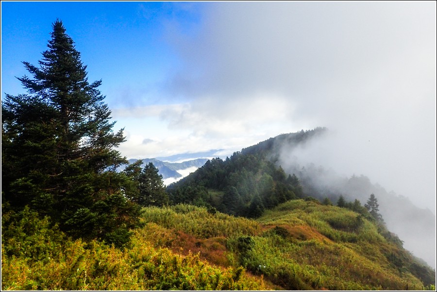 清晨桃山霧茫茫,往喀拉業剛好會經過三角點。